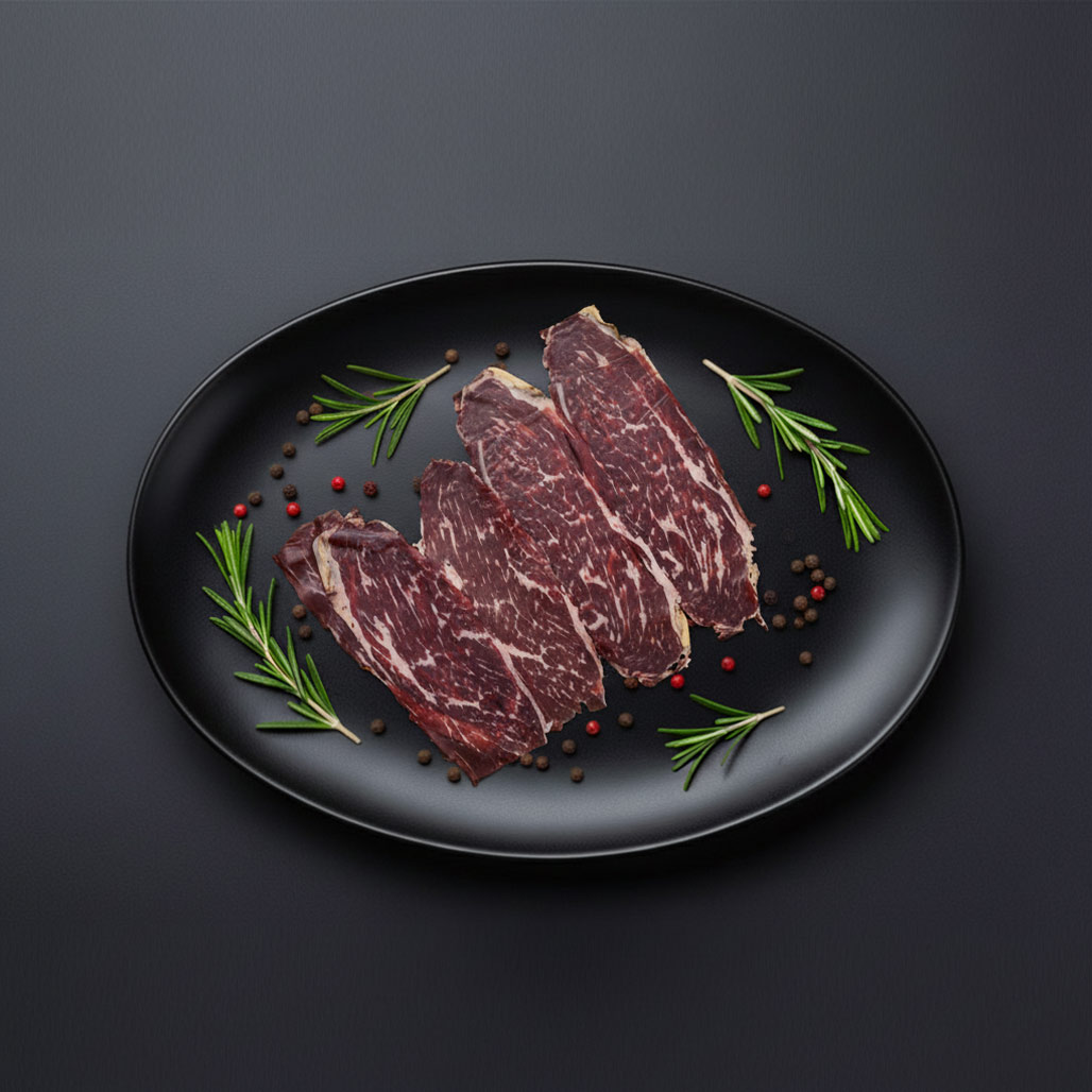 Cada loncha se funde en el paladar, liberando notas ahumadas y saladas que evocan métodos de curación tradicionales.
